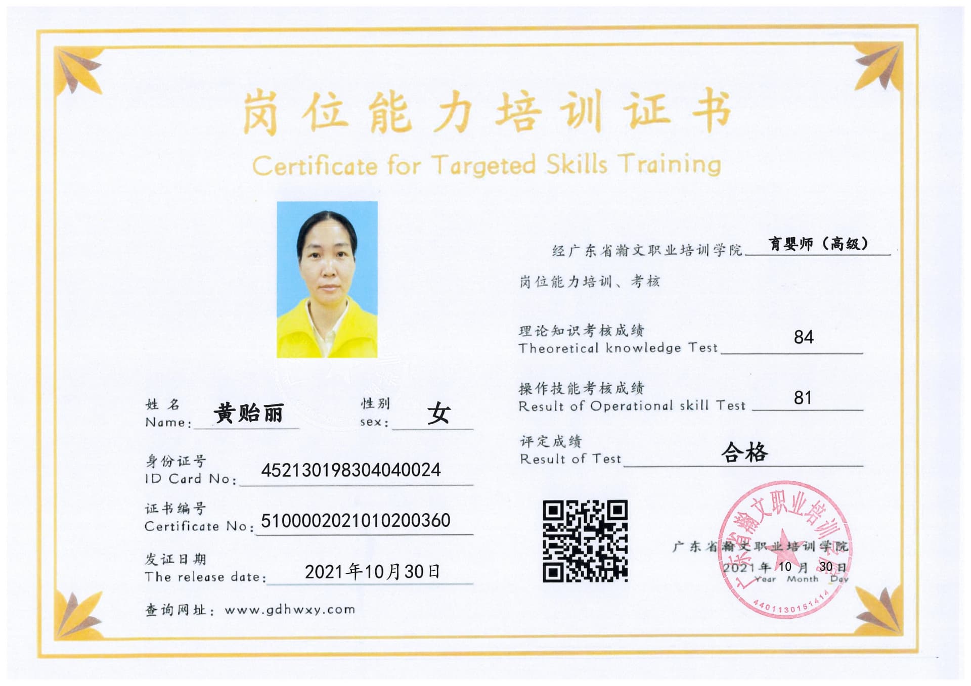 黄贻丽 452130198304040024