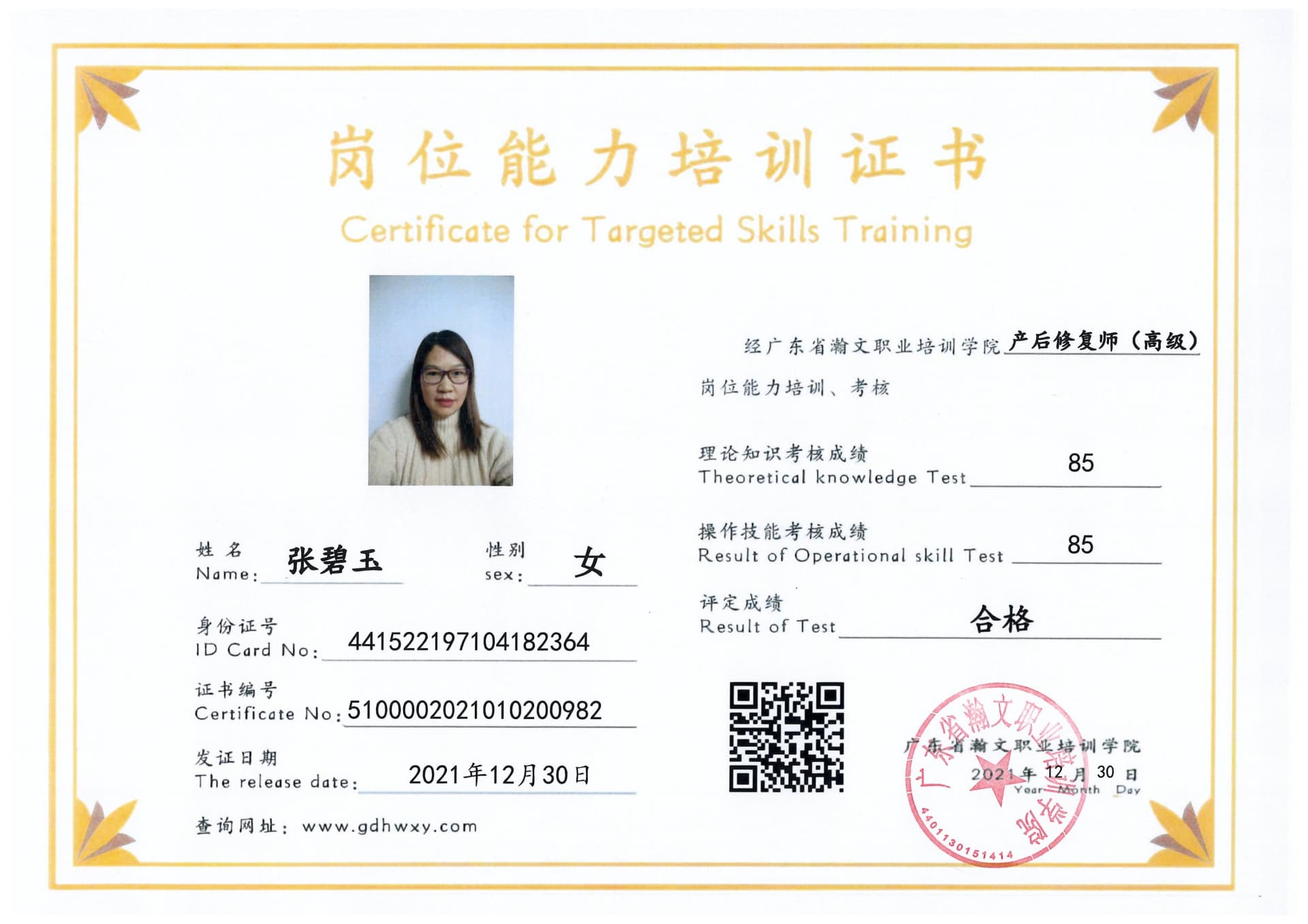 张碧玉 441522197104182364
