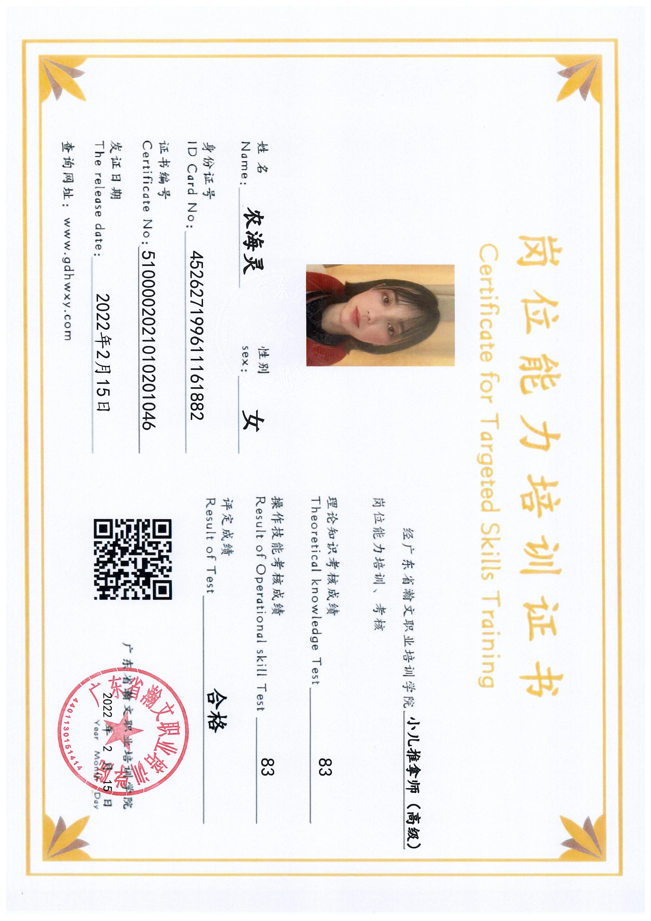 农海灵 452627199611161882